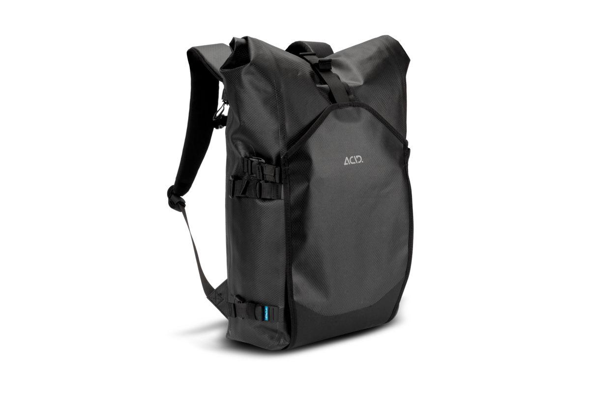 Mit seinem cleveren Design, das es ermöglicht, ihn sowohl als Seitentasche als auch als Rucksack zu verwenden, ist der ACID Flip Pro 25 eine Lösung für Pendler und für alle, die ihr Hab und Gut auf dem Fahrrad transportieren wollen. Die aus strapazierfähigem TPU-Gewebe gefertigte Tasche mit einem Fassungsvermögen von 25 Litern lässt sich schnell und einfach von einer Seite auf die andere umklappen, je nachdem, ob der SMLink 2.0 oder das NF Ergonomics Backsystem verwendet wird. Im Inneren befindet sich außerdem ein 15-Zoll-Laptopfach. Weiterhin verfügt die Tasche über eine seitliche Netztasche, Kompressionsriemen und einen seitlichen Reißverschlusszugang zum Hauptfach.
