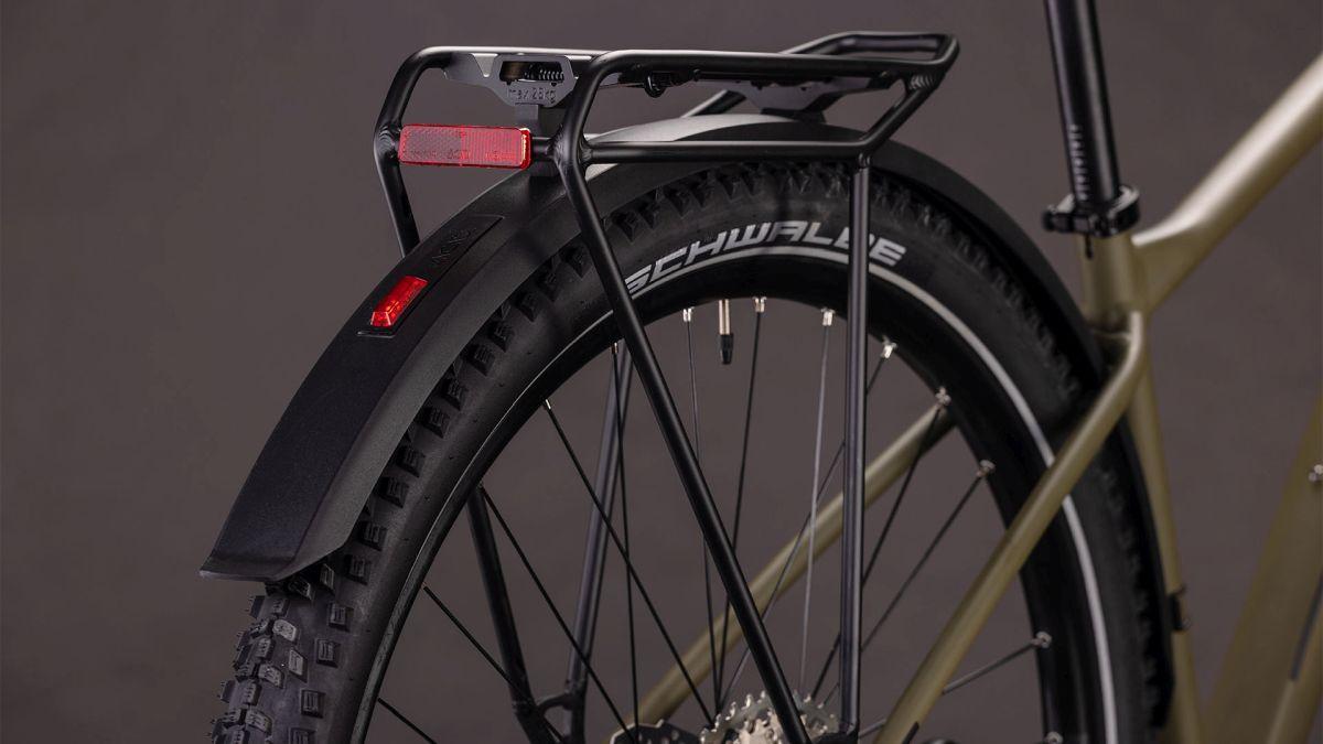 Ein Bike für absolut alles – gibt's das? Natürlich gibt's das und unser Aim SLX FE ist der beste Beweis. Dank integrierten Schutzblechen, Lichtern, Seitenständer und einem vielseitigen Gepäckträger ist es optimal gerüstet für den Einsatz in der City, ob zum Pendeln ins Office oder für Besorgungen aller Art. Wenn's über Land und Schotterwege geht, liefern die 100 mm Federgabel, die 12-fach Deore Schaltung und hydraulischen Scheibenbremsen von Shimano sowie griffige Schwalbe 2.25 Zoll Reifen erstklassigen Support. Nicht zu vergessen unser Size Split System – so finden alle das für sich perfekt proportionierte Aim SLX FE. Man kann eben doch alles haben ...