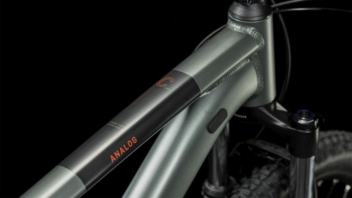 Der Analog Rahmen besticht mit seinem supercleanen Look. Verantwortlich dafür: die im Smooth Welding Verfahren hergestellten Verbindungen am Steuerrohr und Sattelstützenprofil. Außerdem haben wir ihm ein geschraubtes Tretlager gegeben und die Züge ins Innere verlegt, damit sie ihre Aufgabe lange machen und leicht gewartet werden können. Es gibt sogar eine Aufnahme für eine Flat Mount Scheibenbremse, die nahtlos in die Seitenständeraufnahme integriert ist. Montagepunkte für ACID Schutzbleche und Gepäckträger sind auch mit dabei. Die überarbeitete Geometrie hat ein niedrigeres Oberrohr und konifiziertes Steuerrohr für noch zuverlässigeres Handling. Außerdem bleibt viel Platz für breite, griffige und komfortabel rollende 2.25 Zoll Reifen. Auch haben wir unser SizeSplit System jetzt noch breiter aufgestellt – dadurch findest du mit Sicherheit die perfekt passende Kombination aus Analog Laufrad- und Rahmengröße für dich. Und da mit wachsendem Fahrkönnen auch die Ansprüche steigen, kann das Chassis mit einer versenkbaren Sattelstütze ausgestattet werden.