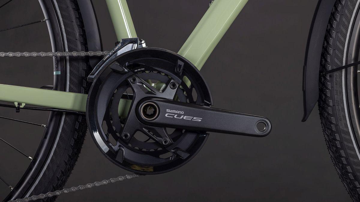 Kurbelgarnitur: Shimano Cues FC-U6010, Hollowtech ll, 46x32T, Chainguard