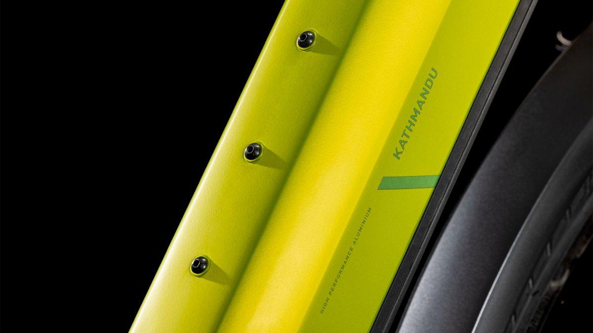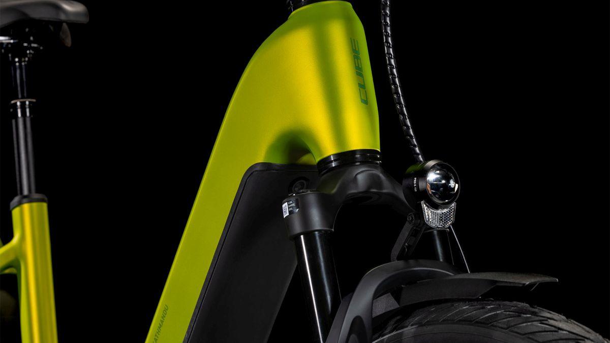 Der Tiefeinsteiger-Rahmen des CUBE Kathmandu Hybrid macht seinem Namen alle Ehre, denn er erleichtert das Auf- und Absteigen und die Tour kann direkt losgehen! Doch da ist noch mehr, zum Beispiel der samt 800 Wh PowerTube Akku ästhetisch und sauber ins Design integrierte CX Motor von Bosch. Unsere Efficient Comfort Geometry arbeitet harmonisch mit der 100 mm Federgabel Hand in Hand, was die Kontrolle vor allem unter schwierigen Bedingungen optimiert. Dazu die interne Zugverlegung, die der cleanen Optik des Chassis in die Karten spielt und den Wartungsaufwand maßgeblich reduziert. Was noch? Ein vielseitiges, beinahe unzerstörbares UDH für einfache Ersatzteilverfügbarkeit, ein integrierter Kettenschutz und unser stabiler, robuster, überaus formschöner integrierter Gepräckträger IC 3.0, auf dem alles Platz findet, was auf Abenteuertour mit muss.