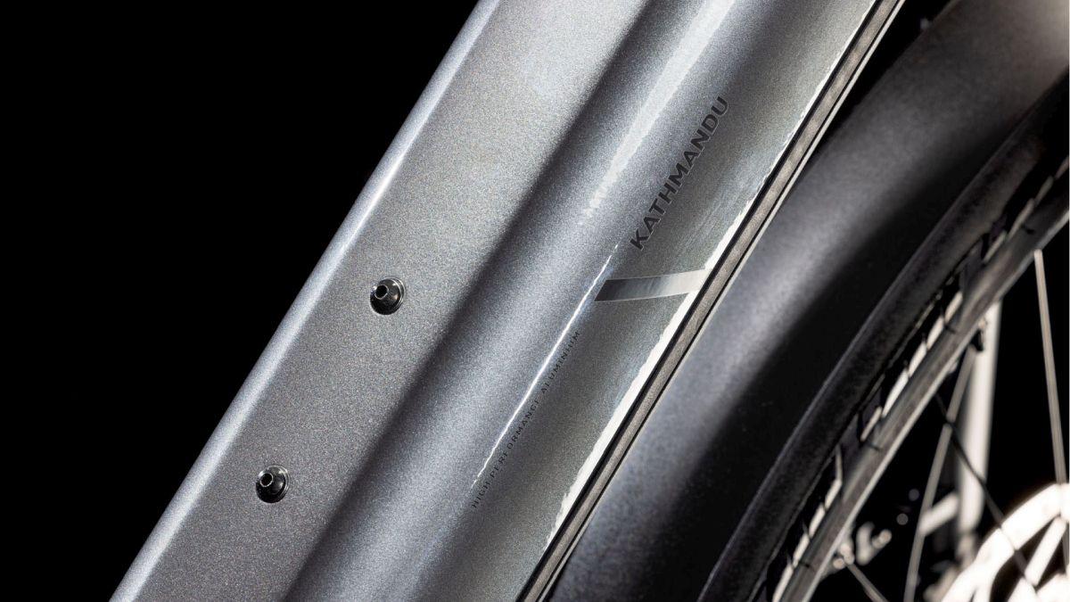 Der Rahmen des CUBE Kathmandu Hybrid sieht auf den ersten Blick vielleicht unspektakulär aus – der zweite enthüllt seine Eleganz, seine Klasse und die vielen Innovationen und cleveren Details. Der samt 800 Wh PowerTube Akku ästhetisch und sauber ins Design integrierte CX Motor von Bosch ist dabei nur der Anfang. Unsere Efficient Comfort Geometry arbeitet harmonisch mit der 100 mm Federgabel Hand in Hand, was die Kontrolle vor allem unter schwierigen Bedingungen optimiert. Dazu die interne Zugverlegung, die der cleanen Optik des Chassis in die Karten spielt und den Wartungsaufwand maßgeblich reduziert. Was noch? Ein vielseitiges, beinahe unzerstörbares UDH für einfache Ersatzteilverfügbarkeit, ein integrierter Kettenschutz und unser stabiler, robuster, überaus formschöner integrierter Gepräckträger IC 3.0, auf dem alles Platz findet, was auf Abenteuertour mit muss.