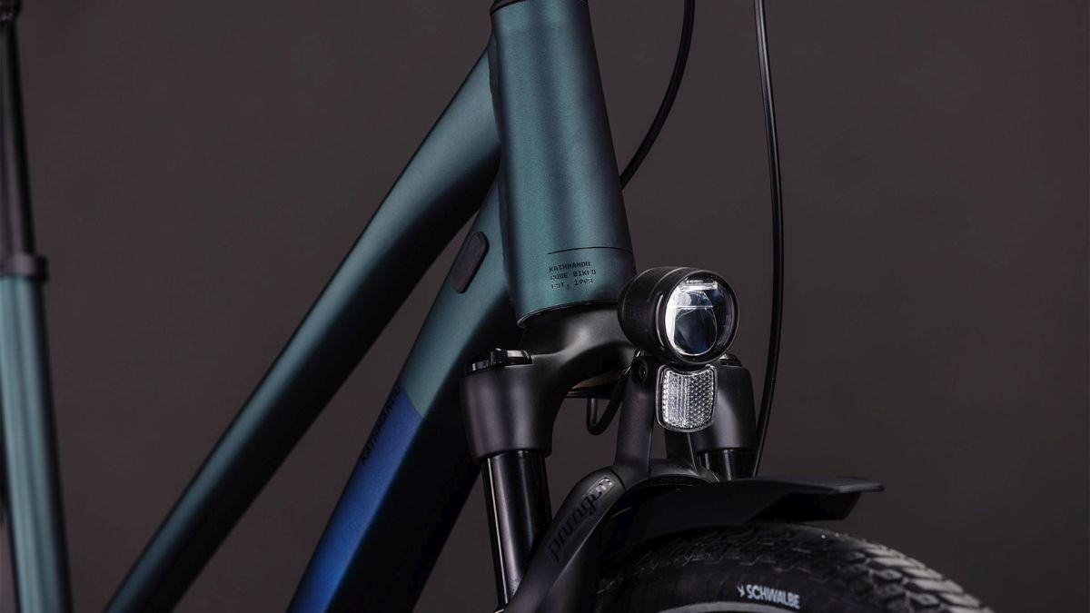 Die ultimative Freiheit auf zwei Rädern: Bei der Entwicklung des CUBE Kathmandu SLT haben wir mal wieder unglaublich viel Liebe zum Detail walten lassen. So fährt sich dieser Tourer dank geschmeidig dämpfender RockShox Paragon Gold Luftfedergabel nicht nur überaus komfortabel. Er begeistert auch mit seiner eleganten Erscheinung dank dem stabilen integrierten Gepäckträger IC 3.0. Dazu kommen superpraktische Features wie ACID Schutzbleche, Lichter und ein Seitenständer. Die leistungsstarken hydraulischen Shimano Cues Scheibenbremsen bringen die geschmeidig dahinrollenden, griffigen Schwalbe Marathon Mondial Reifen bei jedem Wetter zuverlässig zum Stehen. Als Sahnehäubchen geht ein elektronischer Shimano Cues Di2 Q'Auto 11-fach Antrieb mit Dynamosystem am Hinterrad mit auf Tour, der unterwegs automatisch immer in den passenden Gang schaltet. Einfach losradeln und genießen!