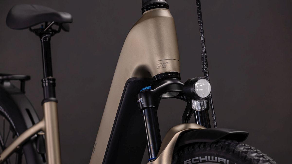 Auf den ersten Blick sieht der Nuride Hybrid Trapezrahmen vielleicht unspektakulär aus, doch wer genau schaut, wird von seiner subtilen Eleganz und den innovativen Details begeistert sein. Neben einer Federgabel mit 100 mm Federweg für ein Plus an Fahrkomfort und Kontrolle haben wir das Chassis mit großzügiger Reifenfreiheit (sogar inklusive der mitgelieferten Schutzbleche) ausgestattet. Im Inneren verlaufende Züge unterstreichen die cleane Optik. Ebenso harmonisch ins Rahmendesign integriert sind der Bosch CX Antrieb und der 600 Wh PowerTube Akku. On top gibt's einen integrierten Kettenschutz, serienmäßig verbaute Schutzbleche, Lichter, einen Seitenständer und unseren stabilen semi-integrierten Gepäckträger 2.0. Da kann das nächste Zweiradabenteuer direkt starten, oder?