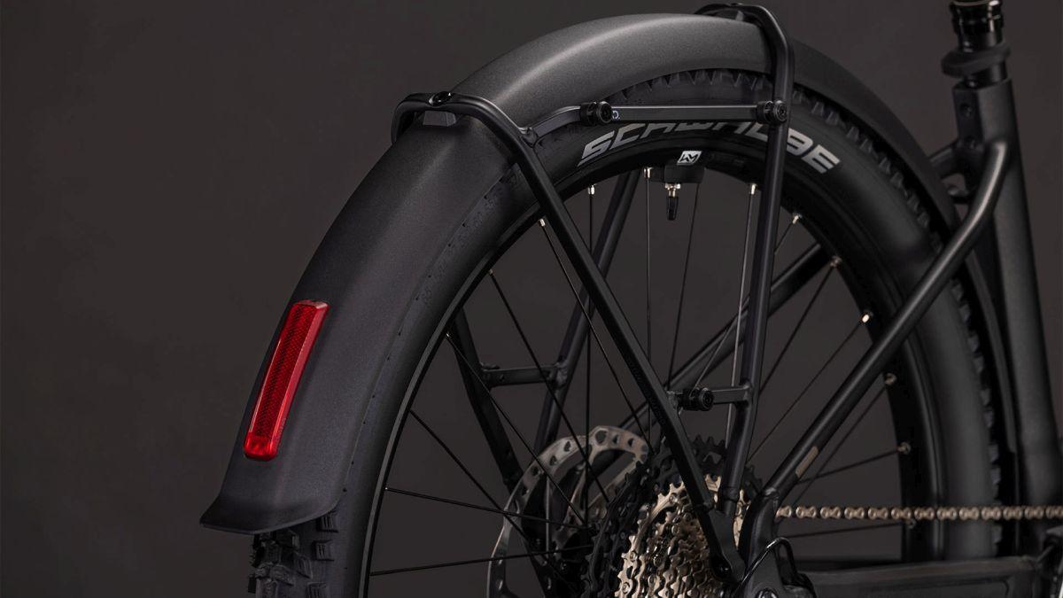 Was beim Reaction Hybrid FE direkt ins Auge sticht, ist sein ästhetisch ansprechendes, praktisches Zubehör, bestehend aus Schutzblechen, Lichtern, Gepäckträger und Seitenständer. Doch das ist noch lang nicht alles. Der Tiefeinsteiger-Rahmen macht seinem Namen alle Ehre, denn damit sind einfaches Auf- und Absteigen garantiert. Sein 800 Wh starker PowerTube Akku von Bosch fügt sich gemeinsam mit dem Bosch CX Motor sicher, sauber und formschön ins Design ein. Zudem ist das Chassis PowerMore-ready, das heißt, es können bei Bedarf weitere 250 Wh mitfahren. Auch die integrierte Sattelklemmung und die nach innen verlegten Züge spielen der cleanen Linienführung in die Karten – und die Kettenführung hält alles top organisiert am Platz. Last, but not least haben wir dank unserem Size Split System für alle die richtige Passform im Angebot. Fazit: Alles da, was wichtig ist – für maximalen Fahrspaß!