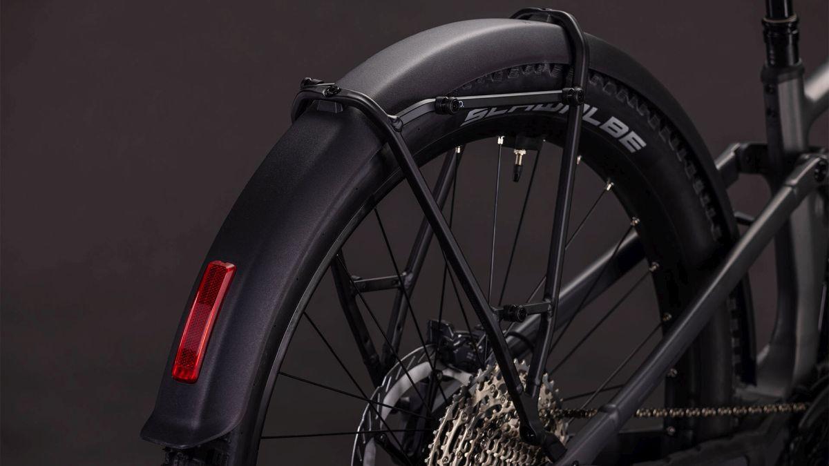Ein Blick auf die serienmäßig verbauten Schutzbleche, den semi-integrierten Gepäckträger und die Lichtanlage und es ist klar: Beim Stereo Hybrid ONE44 FE handelt es sich um einen absoluten Vielseitigkeitsprofi. Doch das praktische Zubehör erzählt nur einen Teil der Geschichte. Sein Bosch CX Motor mit bis zu 100 Nm Drehmoment wird von einem kompakten 800 Wh PowerTube Akku gespeist. 140 mm Federweg vorne und hinten sorgen für erstklassiges Handling und bärenstarke Performance im Gelände. Außerdem spielt unser Internal Cable Routing der cleanen, eleganten Optik des Rahmens in die Karten. Dazu kommen ein UDH Schaltauge für einfache Ersatzteilverfügbarkeit und eine unauffällig und formschön ins Design integrierte Direct Mount Kettenführung. Clever: Dank Size Split haben wir für so gut wie alle die richtige Passform im Angebot.