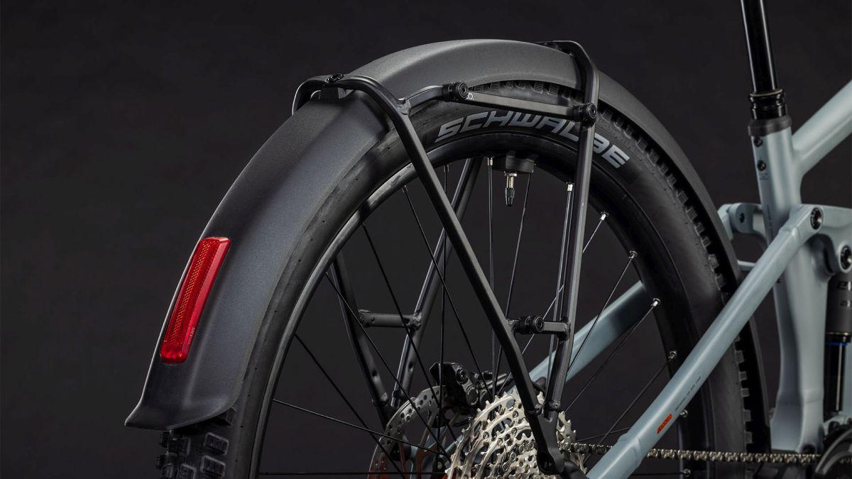 Ein Blick auf die serienmäßig verbauten Schutzbleche, den semi-integrierten Gepäckträger und die Lichtanlage und es ist klar: Beim Stereo Hybrid ONE44 FE handelt es sich um einen absoluten Vielseitigkeitsprofi. Doch das praktische Zubehör erzählt nur einen Teil der Geschichte. Sein Bosch CX Motor mit bis zu 100 Nm Drehmoment wird von einem kompakten 800 Wh PowerTube Akku gespeist. 140 mm Federweg vorne und hinten sorgen für erstklassiges Handling und bärenstarke Performance im Gelände. Außerdem spielt unser Internal Cable Routing der cleanen, eleganten Optik des Rahmens in die Karten. Dazu kommen ein UDH Schaltauge für einfache Ersatzteilverfügbarkeit und eine unauffällig und formschön ins Design integrierte Direct Mount Kettenführung. Clever: Dank Size Split haben wir für so gut wie alle die richtige Passform im Angebot.