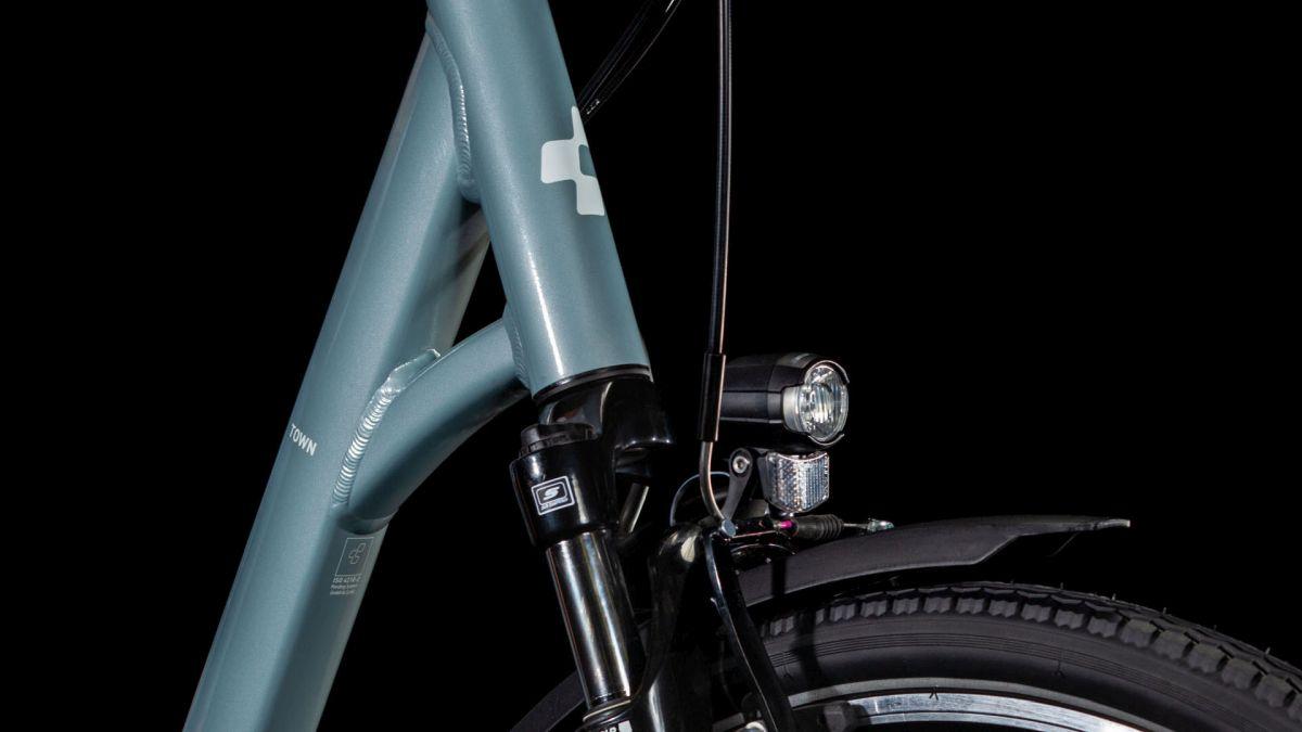 Das Herzstück des Town ist sein hochwertiger, leichter Aluminiumrahmen mit unserer Efficient Comfort Geometry und damit einem unglaublich agilen und sicheren Handling. Er lässt sich spielend leicht durch den Stadtverkehr manövrieren und sieht als Tiefeinsteiger nicht nur elegant aus, sondern erleichtert das Auf- und Absteigen maßgeblich. Das Town kommt ab Werk mit unserem überaus formschön integrierten Gepäckträger auf die Straße. Außerdem verlaufen die Kabelzüge im Unterrohr, was für einen cleanen Look und dafür sorgt, dass die Schaltung ihre Arbeit länger sauber machen kann. Selbstverständlich haben wir an genügend Platz – und an Montagepunkte – zum Anbringen eines Flaschenhalters gedacht. Da kann die Wochenendtour ruhig mal länger dauern. Aufsitzen und genießen!