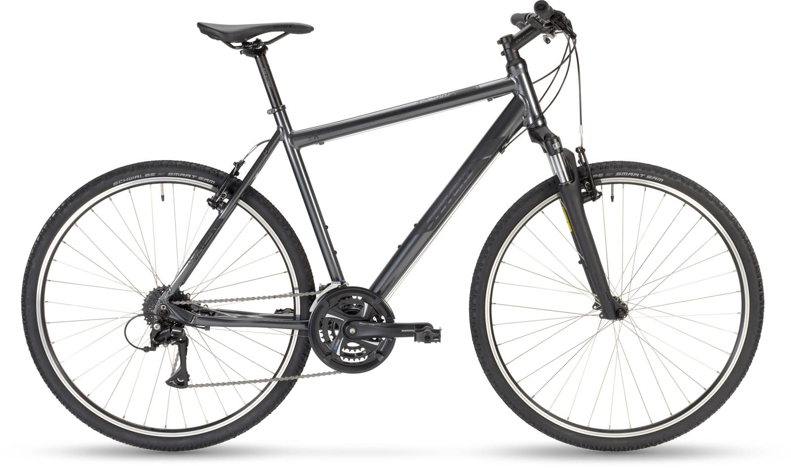 Und nichts überwindet die Grenzen der Routine so leicht wie ein flinkes, zuverlässiges Rad. Geschmeidig bügelt die verstellbare Federgabel der Stadt die Falten weg und dem Land die tiefen Runzeln. Schalten und Walten? Das regelt der Shimano 3x8fach-Antrieb ganz intuitiv.