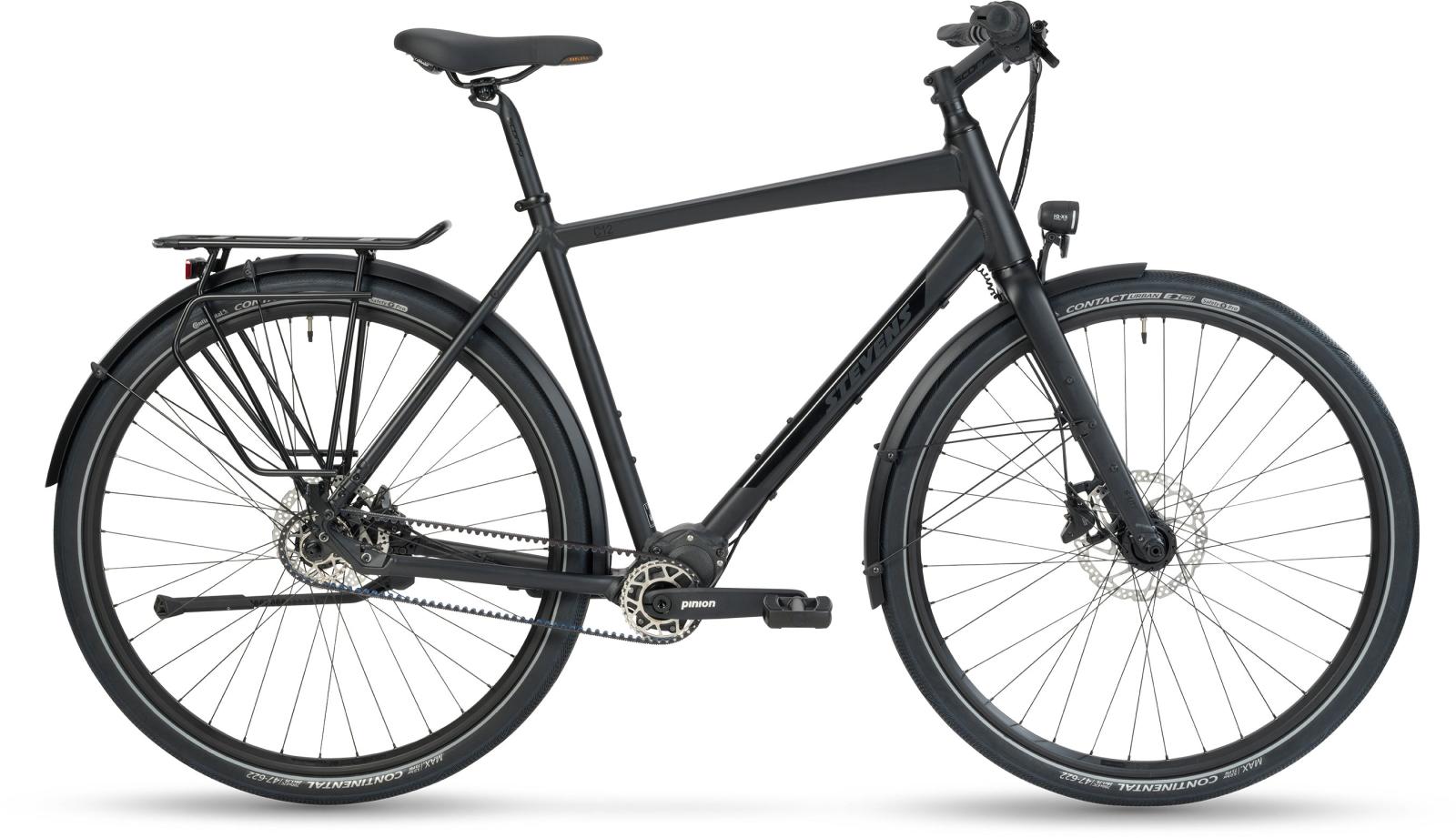 Hinter seiner mattschwarzen Eleganz verbergen sich zahlreiche Qualitäten, die vom ersten Pedaltritt an überzeugen. So ergibt das Ensemble aus leichtem Aluminiumrahmen, der exklusiven STEVENS S-Lite Aluminium-Gabel und dem innovativen 12-Gang-Getriebe mit Magnesium-Gehäuse trotz Vollausstattung ein geringes Gesamtgewicht – für spritzige Agilität. Der Gates CDX-Zahnriemen erledigt seinen Job über viele tausend Kilometer besonders wartungsarm. Und die ausgewogene Sitzposition passt für gemütliches Bummeln durch den Stadtpark ebenso wie auf einer flotten Sonntagsausfahrt über Land.