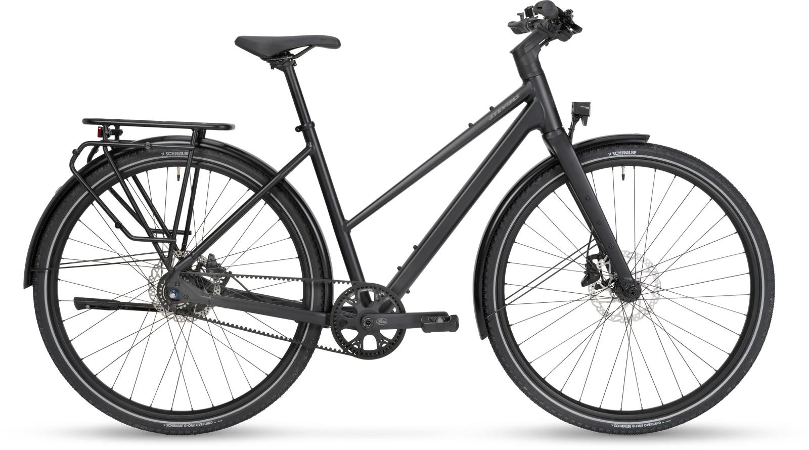 Unkomplizierter City-Tourer mit wartungsarmem Riemenantrieb. Egal ob auf Mehrtagestour mit Gepäck, beim Wochenendausflug oder im täglichen Pendelverkehr – der dynamische, schwungvolle Aluminiumrahmen in sänftigen Velvet Black und die leichte, lenkstabile Aluminiumgabel machen das Caleta 7.2 zum Inbegriff von Fahrfreude. Die Shimano Alfine 11-fach Nabenschaltung sorgt für eine zuverlässige Schaltung und den sorgenfreien Gebrauch im Alltag. Mit Gepäckträger und LED-Beleuchtung sicher und stylisch unterwegs (FEQ).